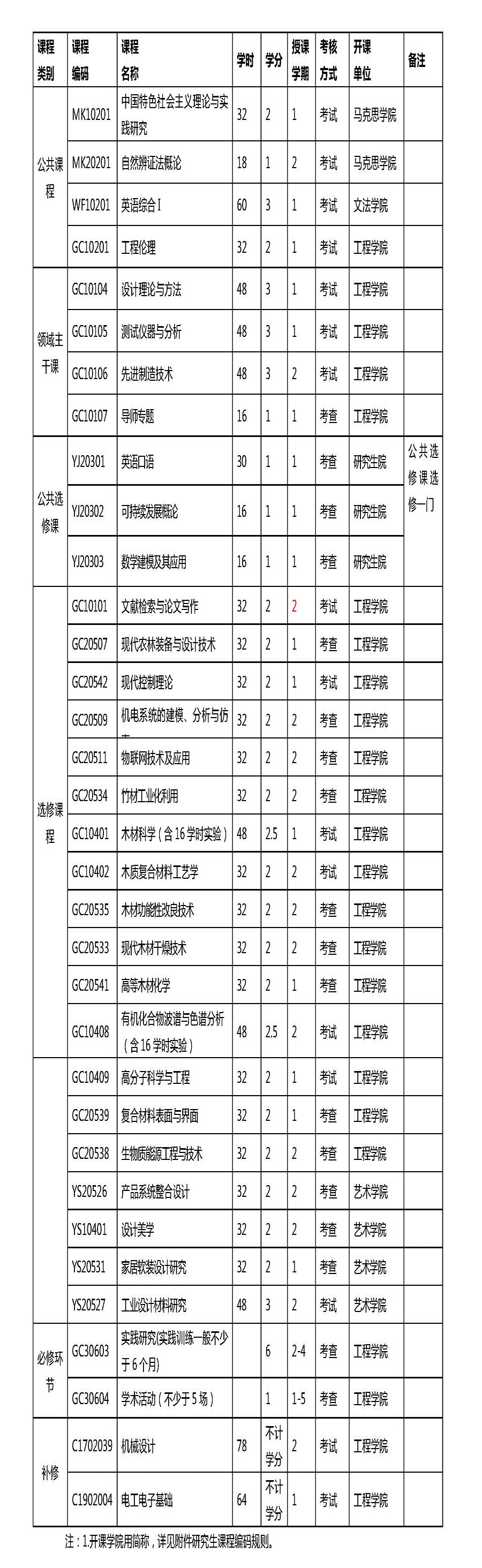 研究生课程学习采用学分制,要求所修课程总学分不少于32学分(含实践研究6学分+学术活动1学分)。原则上所修课程总学分不多于36学分。外国留学生修读课程及学分要求相同。同等学历或跨专业考取的硕士研究生需补修本专业本科主干课程,要求通过课程考试,但不计学分。非学位课由导师和研究生根据专业培养的要求以及研究生原有基础、特长共同商定。