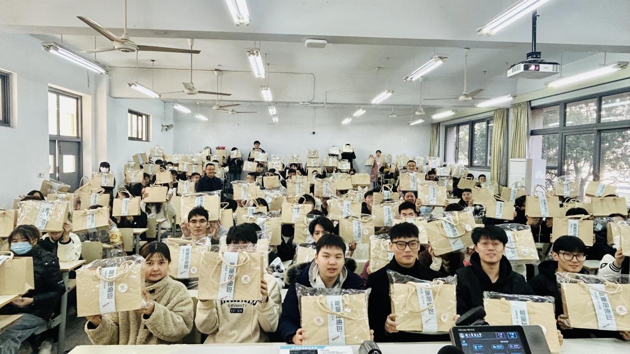 随后学院领导和老师为同学们送上满载学院关爱和祝福的“能量加油包”,为大家带去温暖,提振士气。
