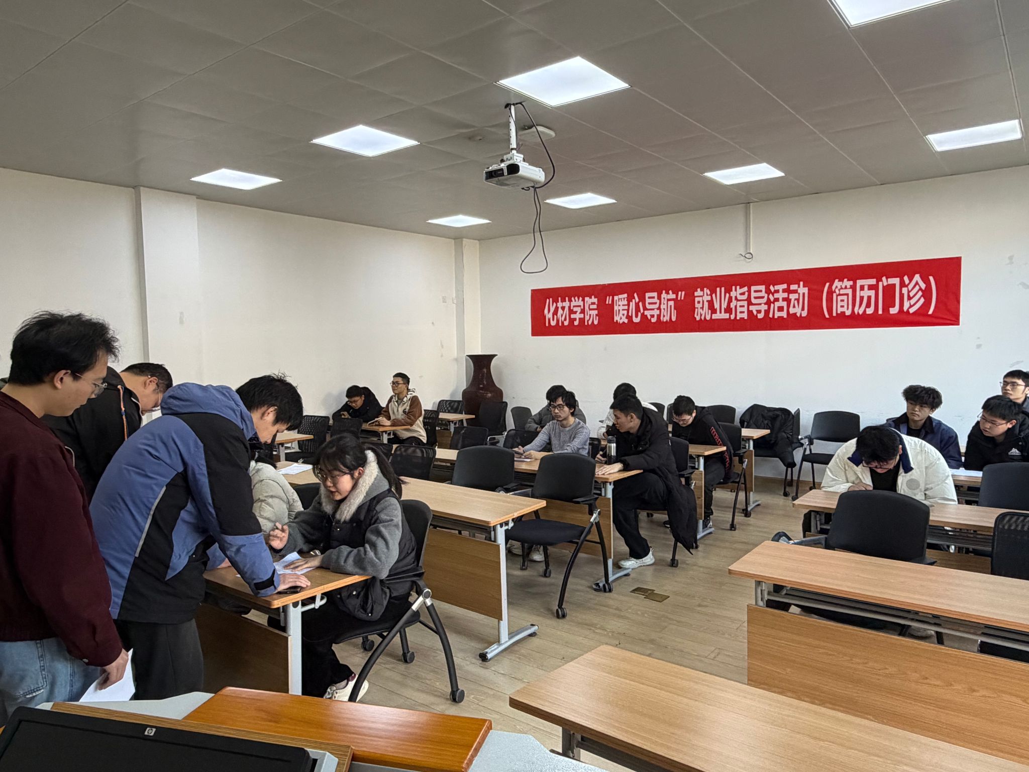 活动现场,老师们耐心倾听学生求职困惑,逐句推敲简历内容,从个人优势提炼、实践经历梳理、内容逻辑编排到语言表达优化等方面给出针对性指导。“这里可重点突出与目标岗位匹配的实验技能”“项目成果增补量化数据,会更具说服力和直观性”,一句句专业细致的建议,让同学们清晰掌握简历优化要点,切实解决求职路上的“第一道难题”,现场学习氛围浓厚,收获满满。