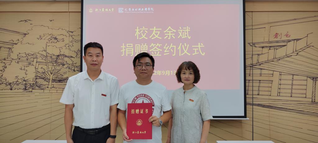 会上,孙庆丰与校友余斌签订了捐赠协议,并颁发了捐赠证书。