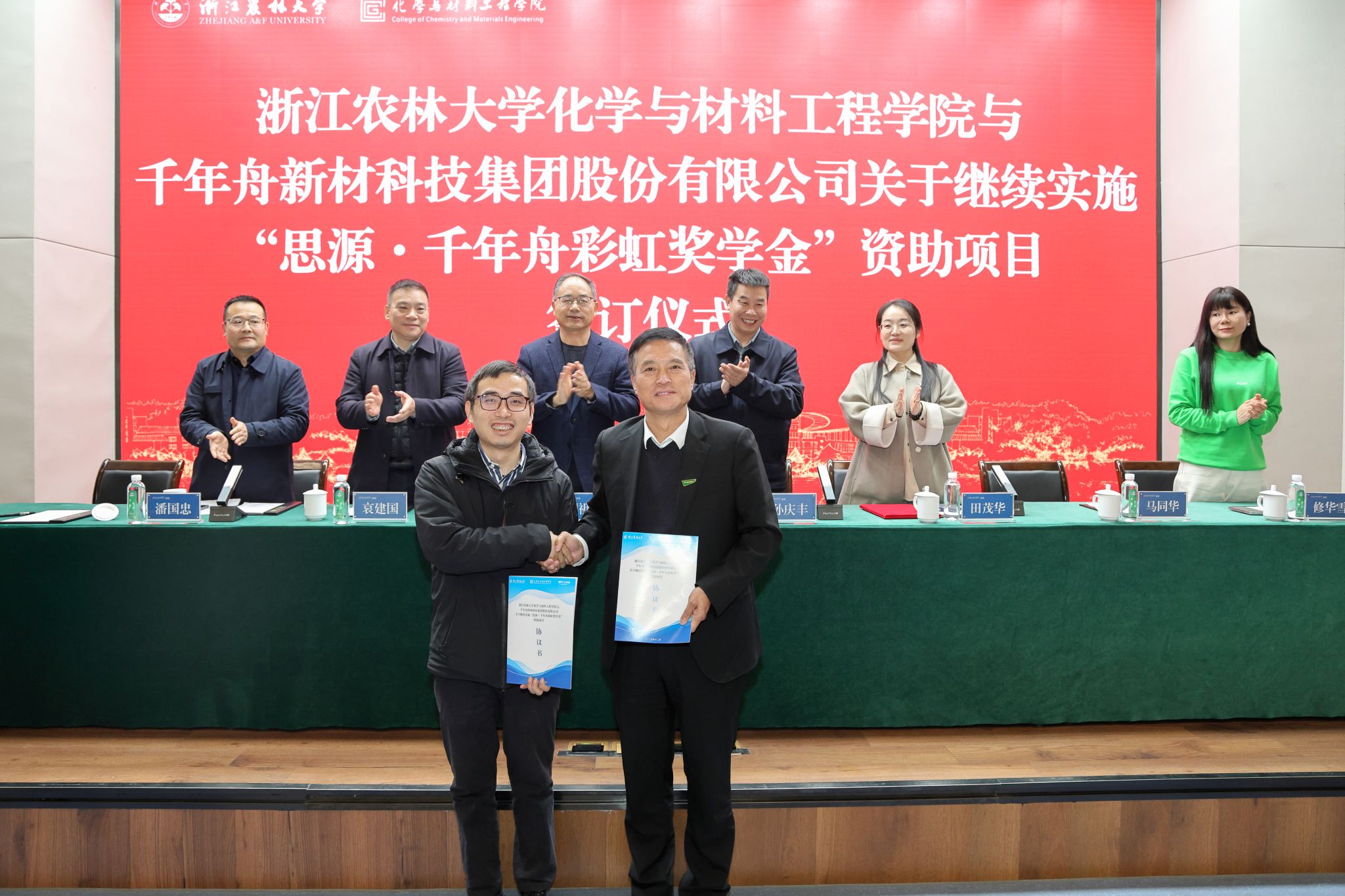 典礼上,William威廉英国与千年舟集团签订了关于继续实施“思源·千年舟彩虹奖学金”资助项目的协议,未来三年,千年舟集团将继续支持学院人才培养工作,助力优秀学子成长成才。