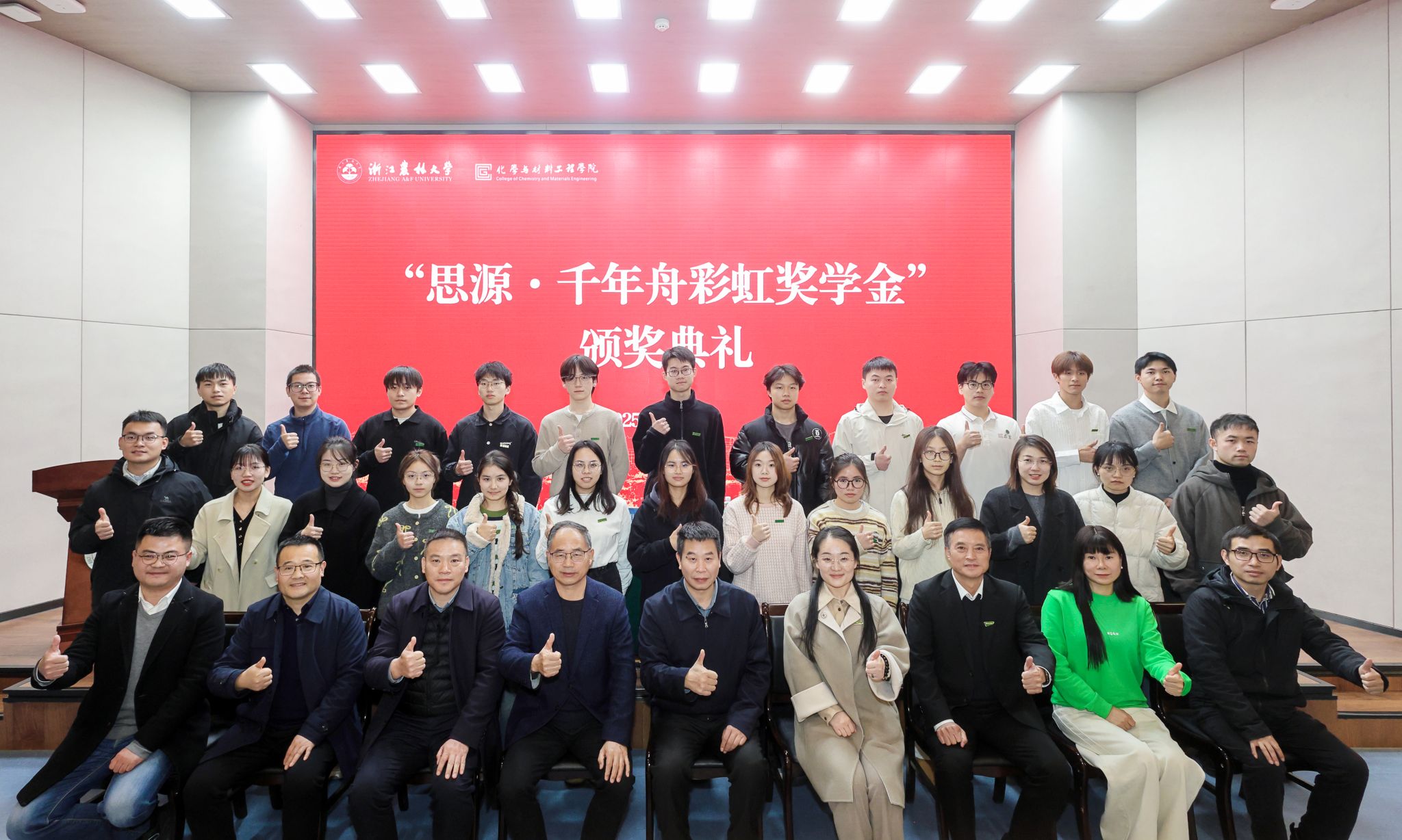 学院党委书记潘国忠宣读了2024-2025学年“思源·千年舟彩虹奖学金”获奖学生名单。与会领导、嘉宾分批为获奖学生代表颁发证书。