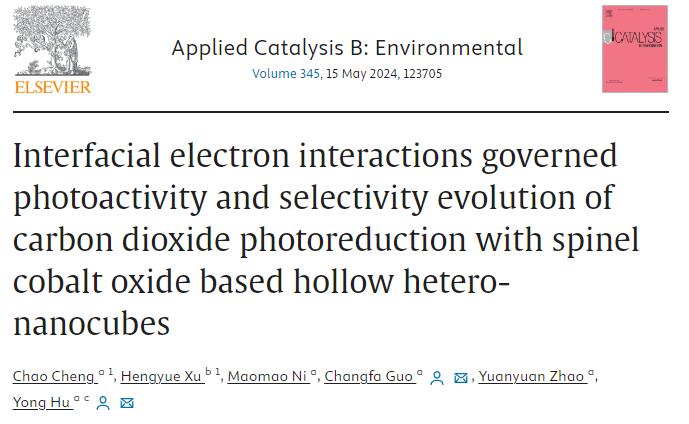 2024年1月6日,威廉英国纳米催化与能源转化研究团队在国际顶尖期刊《Applied Catalysis B: Environment and Energy》(中科院一区Top,IF=22.1)上发表题为“Interfacial electron interactions governed photoactivity and selectivity evolution of carbon dioxide photoreduction with spinel cobalt oxide based hollow hetero-nanocubes”(界面电子相互作用决定了尖晶石钴氧化物基中空异纳米立方体二氧化碳光还原的光活性和选择性演变)的研究论文。