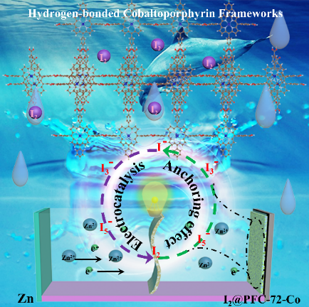 这项研究表明,氢键金属卟啉框架中单个金属原子的配位成功改善了锌碘电池中碘的电催化氧化还原转换过程,氢键金属卟啉框架在锌碘电池中的应用,有望拓宽其潜在用途。