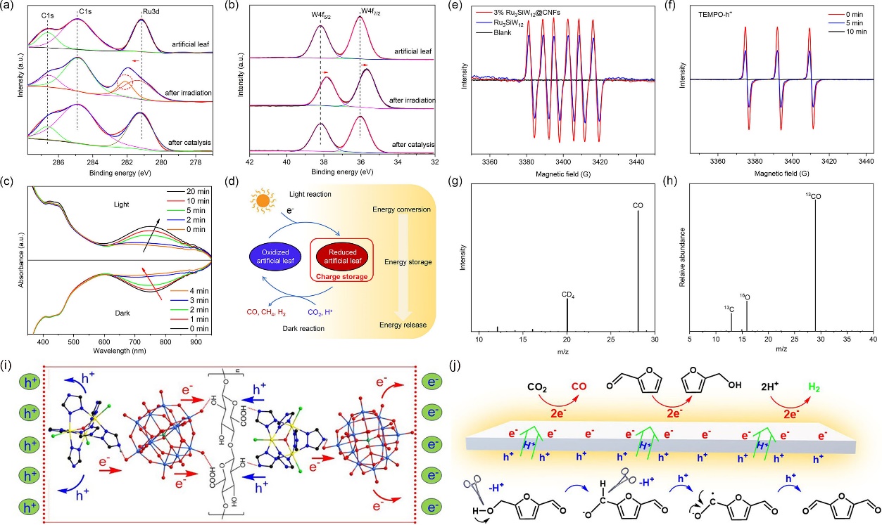 图2. 人造树叶电子转移、储存、释放及机理路径