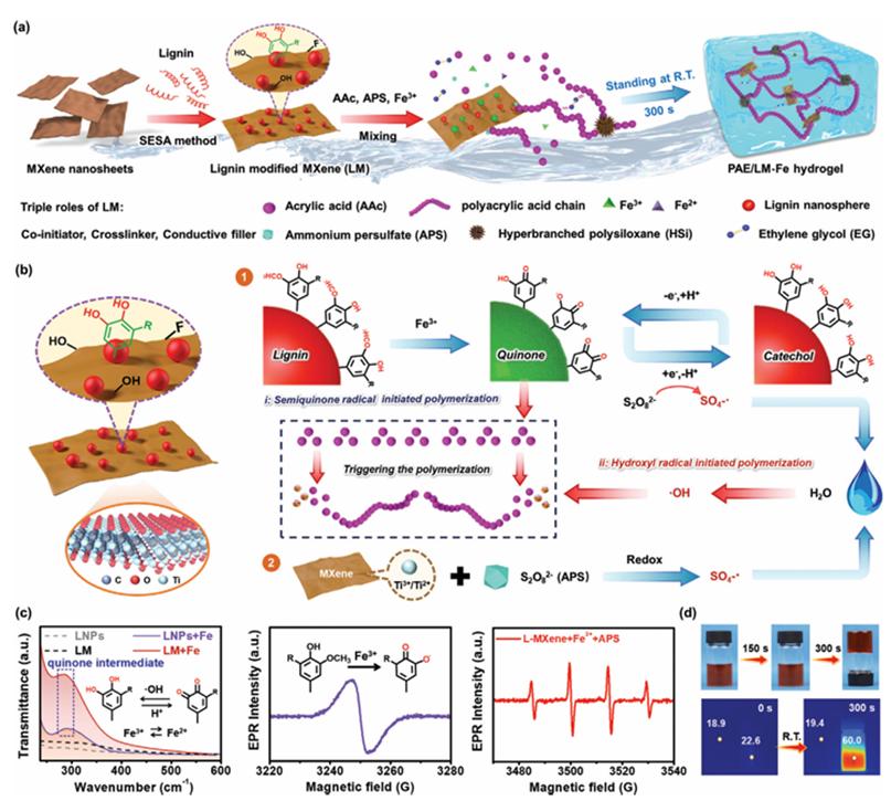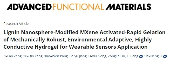 近日,威廉英国林业工程学科生物基软材料与阻燃功能材料团队以“Lignin Nanosphere-Modified MXene Activated-Rapid Gelation of Mechanically Robust, Environmental Adaptive, Highly Conductive Hydrogel for Wearable Sensors Application”为题发表在工程技术领域国际期刊《Advanced Functional Materials》上(中科院1区TOP,IF=18.5)。论文第一作者为团队硕士毕业生曾子凡,青年教师厉世能博士为论文通讯作者,合作通讯作者为中科院物理所/长三角物理研究中心的彭蠡副研究员。William威廉英国为该论文第一单位和通讯作者单位。
