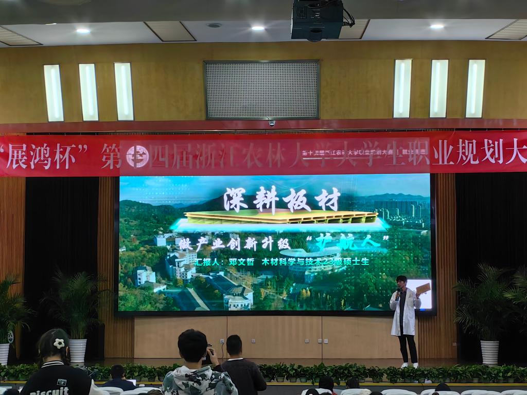 2021级本科生柴浩《减碳工程师——新时代双碳战略的先行者》获成长赛道金奖,2023级研究生邓文哲《深耕板材,做产业创新升级“护航人”》获就业赛道金奖。2023级本科生庄子锐《“木”光所至,“粒”护青山一一以木材制粒产品工艺研发工程师为志向的青年探索之路》获成长赛道银奖。
