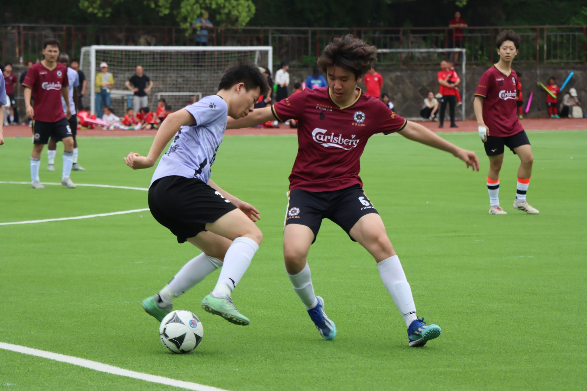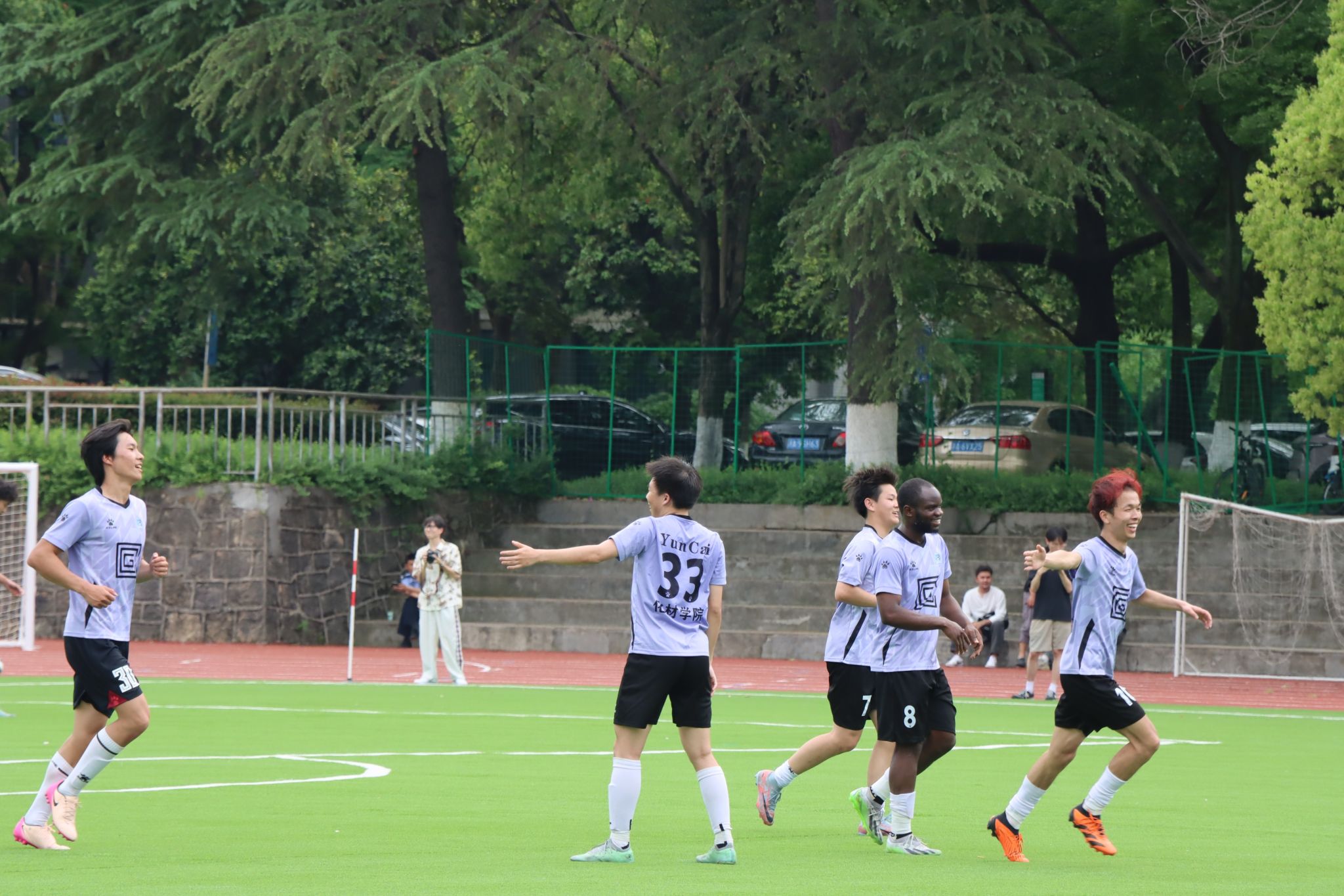 决赛现场,威廉英国与经管学院展开巅峰对决。上半场由经管队开球,化材院队发挥其强大的传控能力,凭借精妙的团队配合与前锋球员的精准射门,率先打破僵局!门将多次上演“神扑救”,后卫线稳如磐石,最终威廉英国以5:1的比分战胜经管学院,成功赢得本届学院杯冠军,捧起了冠军奖杯!
